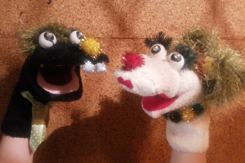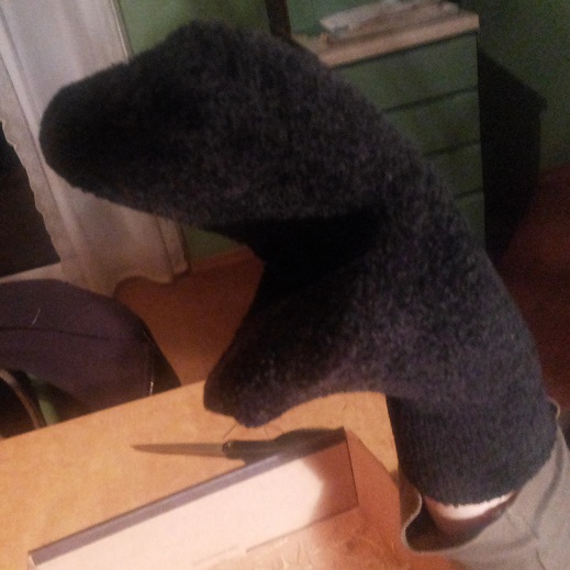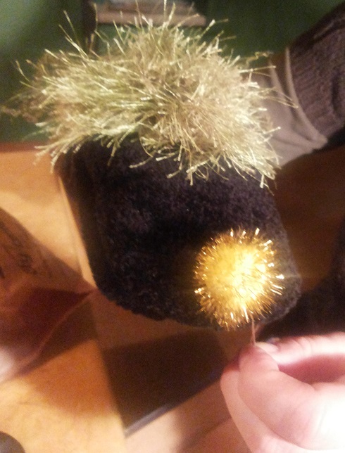 Najprej sem se podala na lov za pravimi nogavicami. Morale so biti ravno prav velike, ravno prav prožne in zeeelo mehke. In ko sem že obupala sta me v neki trgovini čakala v kompletu dva zadnja para ravno tapravšnjih. En par je bil črn, drug pa bel. Pa je bila zopet dilema tu. Nekateri moji domači so prisegali na črno, drugi so zopet dejali da pride v poštev samo bela…….in tako, ker se nismo mogli zediniti….sta pričela počasi pod mojimi rokami in s Pehtino pomočjo nastajati gospod in gospa ŽVERCA.